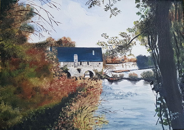 Moulin de Chitré en peinture par Fran en 2011 et en photo en novembre 2007